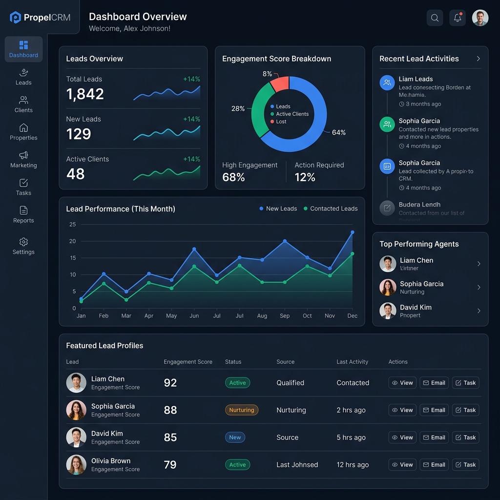 Acompanhe todos os seus leads e mantenha o histórico de interesse de cada cliente.